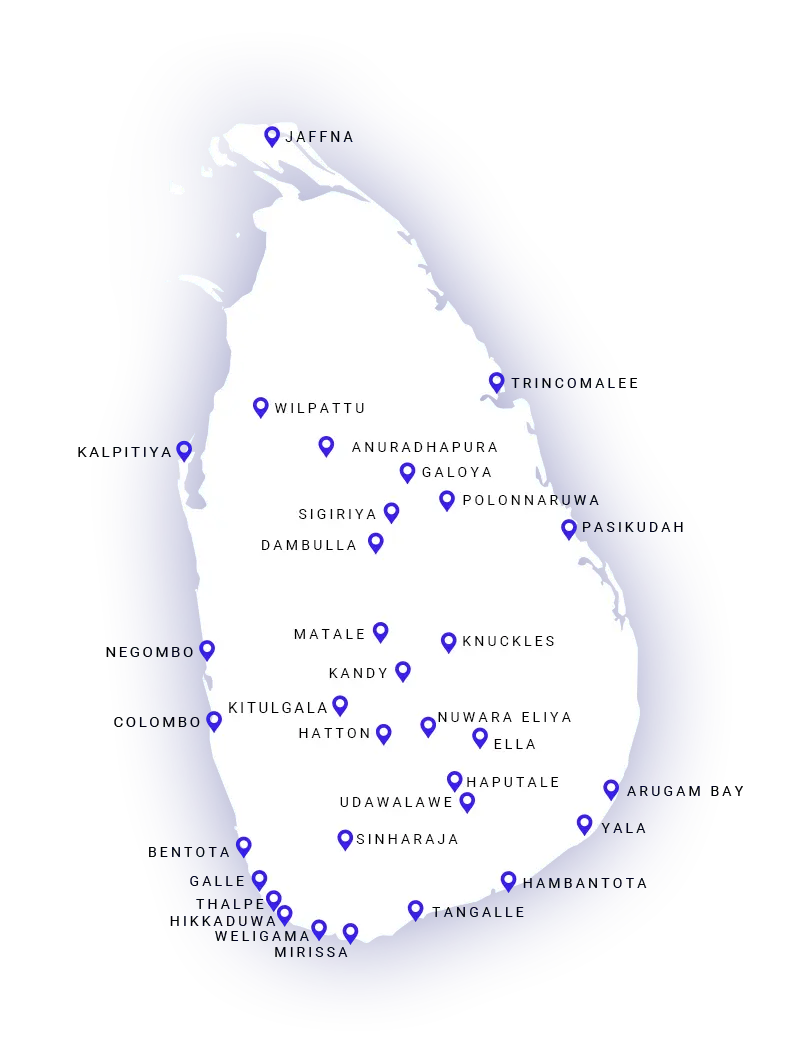 Plan your perfect trip with our interactive map, highlighting the best places to visit in Sri Lanka. Whether you’re looking for cultural landmarks, serene beaches, or thrilling wildlife experiences, navigate through the map and find your ideal destination with ease.